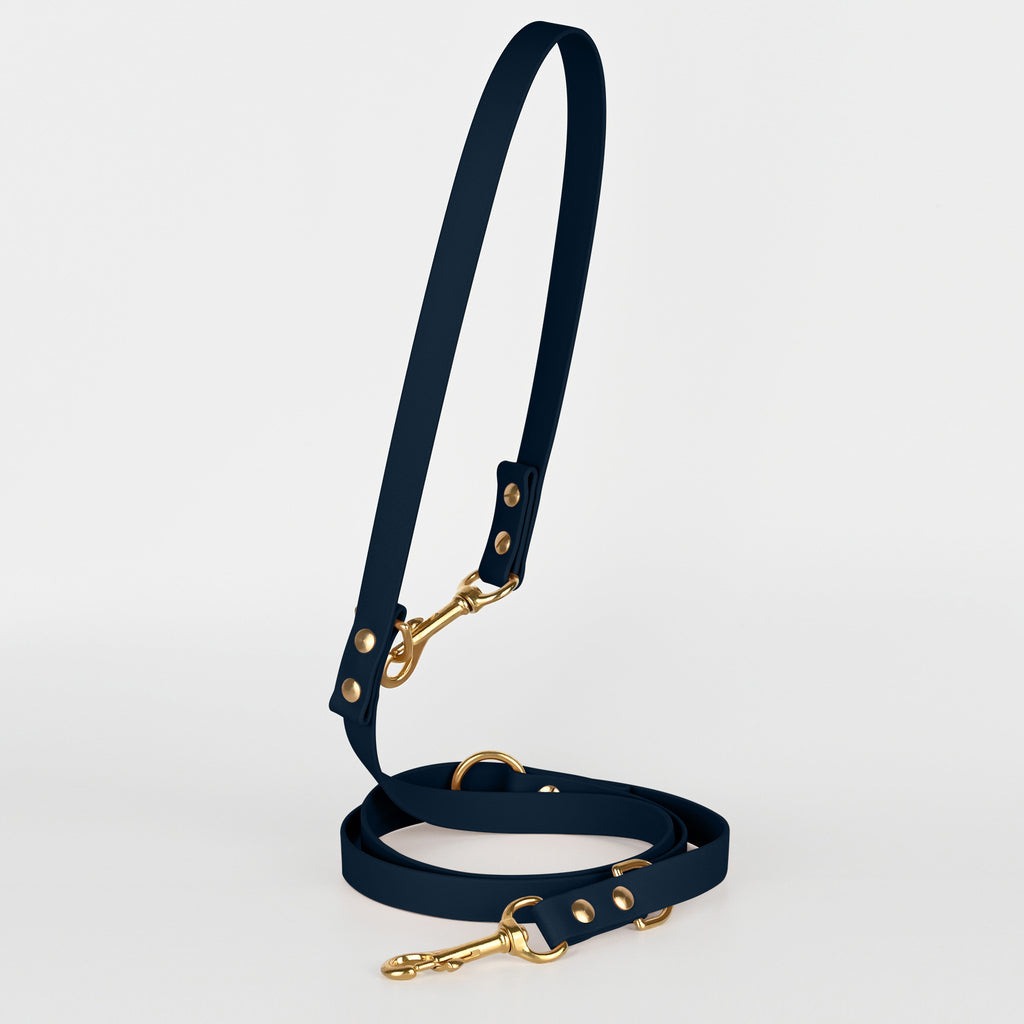 Unsere edle Biothane Hundeleine lässt sich als 3-in-1-Modell in verschiedene Positionen einstellen, mit Handschlaufe, als Umhängeleine oder kurze Cityleine. Die Leine ist besonders wetterfest, stabil und dank dem Zusammenspiel von Messing und zeitlosem Navy ein echter Eye-Catcher. Im Vergleich zu anderen Materialien zeichnet sich Biothane durch Langlebigkeit, Beständigkeit und eine einfache Pflege aus.
