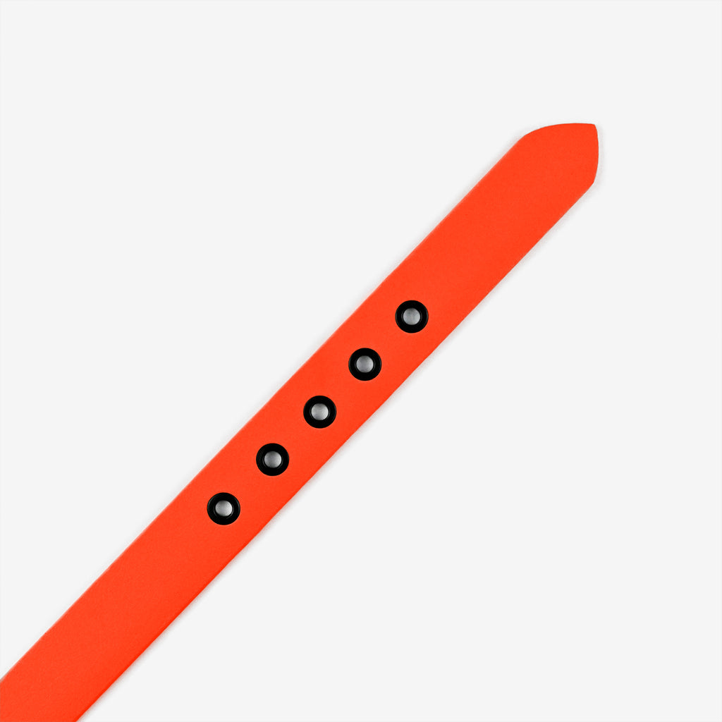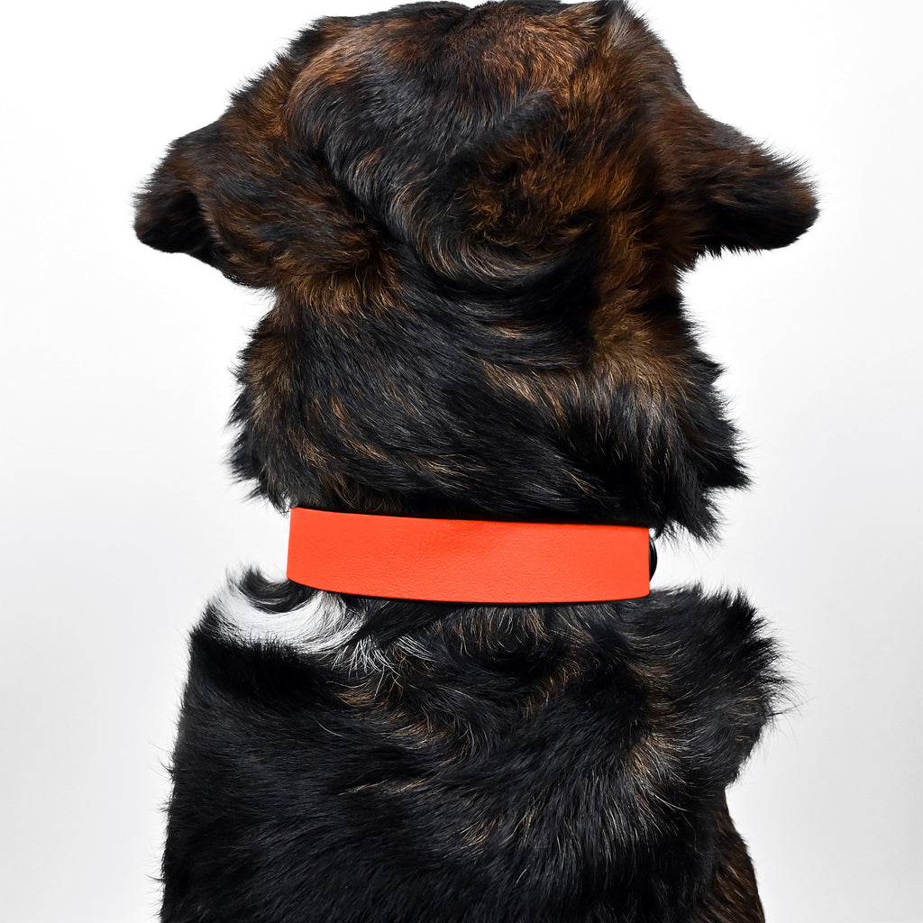 Unser Biothane Halsband Orange besticht durch das schlichte Design und die hohe Widerstandsfähigkeit. Dank der verstellbaren Dornschnalle lässt sich das Halsband auf die ideale Größe einstellen. Dadurch wird ein Herausziehen vermieden und der Hundehals nicht eingeschnürt. Im Vergleich zu anderen Materialien zeichnet sich Biothane durch Langlebigkeit, Beständigkeit und eine einfache Pflege aus. Die Metallhardware in Schwarz gibt dem Halsband einen modernen Look und sorgt gleichzeitig für größtmögliche Sicherheit und Stabilität.
