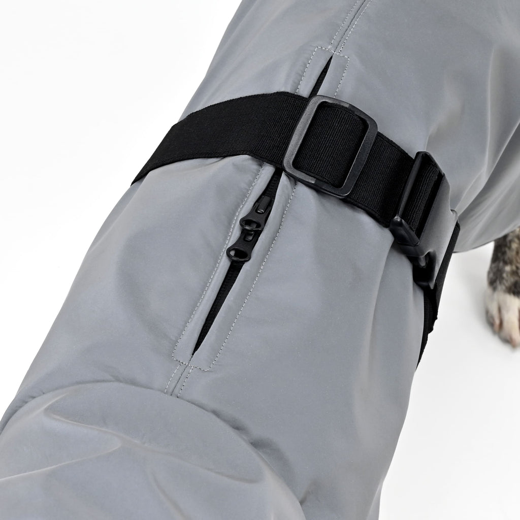 Das reflektierende Material reagiert auf jede Art von Licht und sorgt dafür, dass dein Hund auch bei schlechten Sichtverhältnissen oder im Dunkeln gut gesehen wird, was die Sicherheit im Straßenverkehr und bei Waldspaziergängen deutlich erhöht. Der flexible Bauchgurt und die Beinschlaufen sorgen zudem für einen sicheren, rutschfesten Sitz, sodass der Mantel auch bei aktivem Toben in Position bleibt.