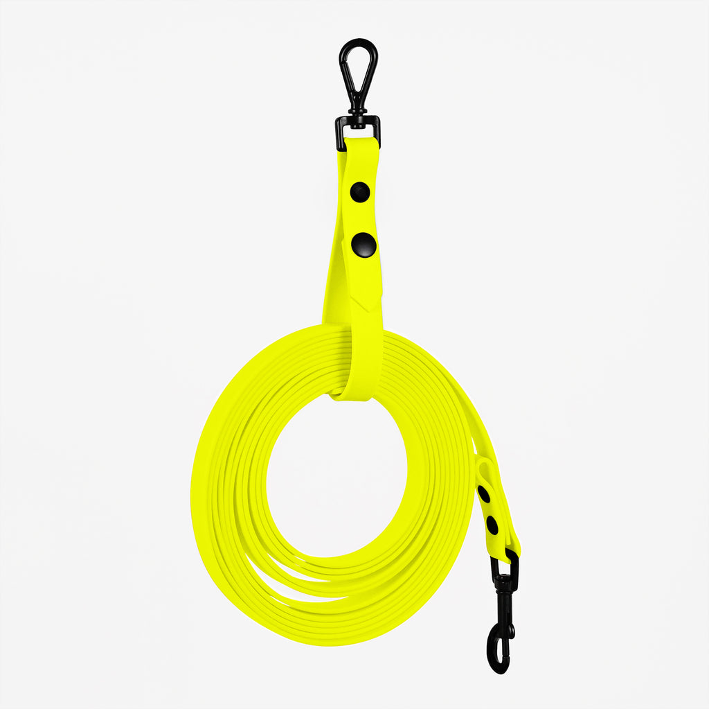 - Hohe Reißfestigkeit: Biothane ist extrem reißfest und hält selbst starken Zugkräften stand. Das macht sie zur idealen Schleppleine für den Hund, selbst bei großen oder kräftigen Rassen. Egal ob deine Schleppleine 10m oder 20m lang ist – sie bleibt stabil und sicher.